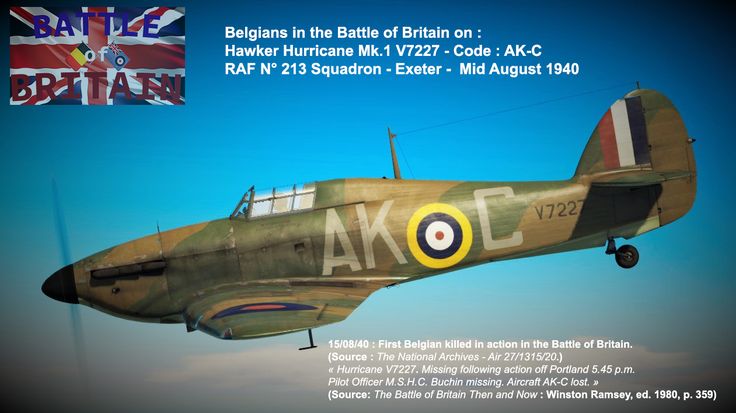 213 Sqn Hurricane V7226 AK-I P/O J A L Philippart – killed. Shot down by ME109s off Portland. Pilot baled out over the sea, but drowned, his body was washed ashore on the 28 August.
