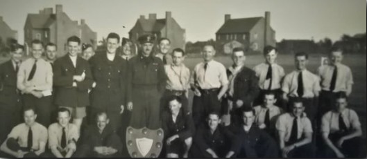Below - 266 Squadron members proudly with the football shield following match victory. Robert Murray sustained a leg injury during the game.