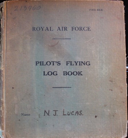 Below - The RAF Form 414 Pilot’s Flying Log Book of F/O N J Lucas.