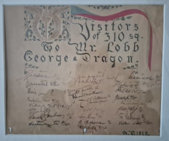 Below - This is a unique piece of memorabilia courstesy of Suzannah Holwell, Clyst St George, Devon. Members of the 310 Czechoslovak squadron presented this scroll to the then landlord of the St George and Dragon pub/restaurant, Mr Harold Lobb, in 1942. All squadron members signed this as a token of their appreciation for his service.
