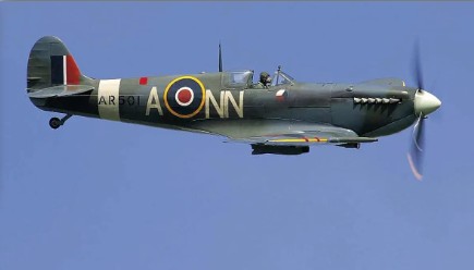 Below - Spitifre 5c AR501 wearing its authentic 312 (Czech) Squadron paintwork making one of its regular appearances at Old Warden before going in for its major restoration.