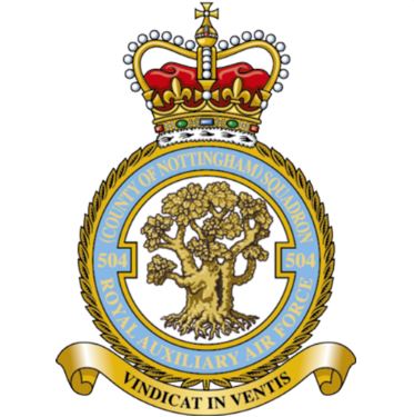 The Squadron crest was awarded in October 1941 and featured an Oak Tree. The ‘Major Oak’ appears in the Arms of Nottingham.