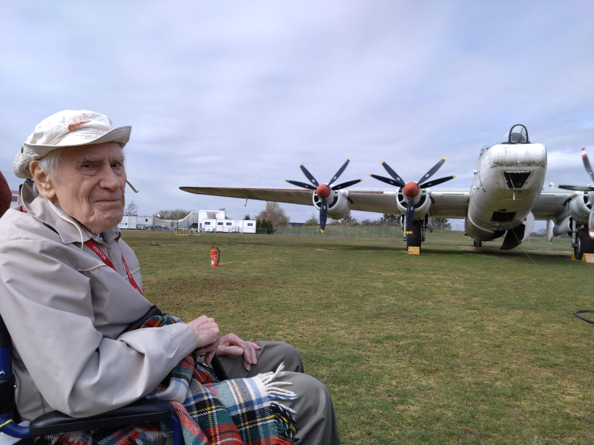 Danny is pictured next to an Avro Shackleton.