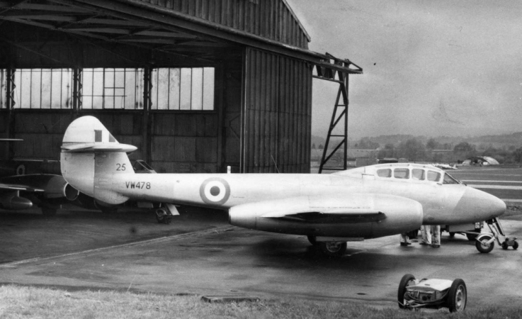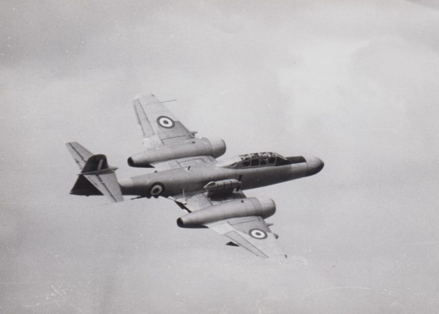 #note: Meteor WM224 experienced an incident when it was hit by a shell. This was not fully discovered until the aircraft landed back at Exeter when the pilot then noticed the lack of rudder control. When engineers inspected the aircraft, it was discovered the rudder control cable was severed. It was deemed a lucky escape for the pilot. If the shell had hit the main fuel tank the outcome could have been very different.