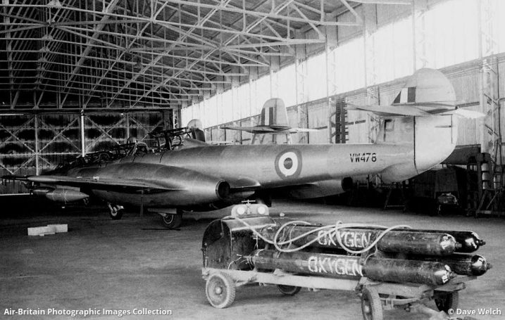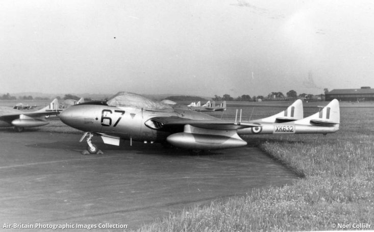 Vampire and Meteor aircraft recorded at Exeter were as follows,