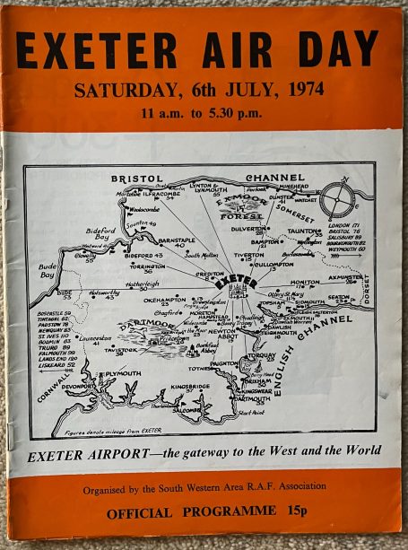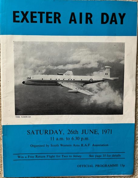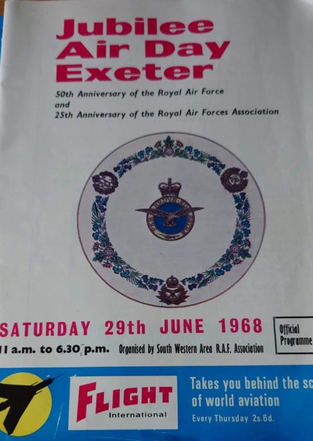 When Exeter Airport held an annual Air Day the South West Area of the RAFA for many years were the main organisers. The first year on record was Exeter Air Day on Saturday 28 June 1958, as noted in the flying programme. The Public Relations Adviser to RAFA was Mr Cyril Banks with the Area Secretary of RAFA being C N Brierley at the Exeter office in St David’s Hill.