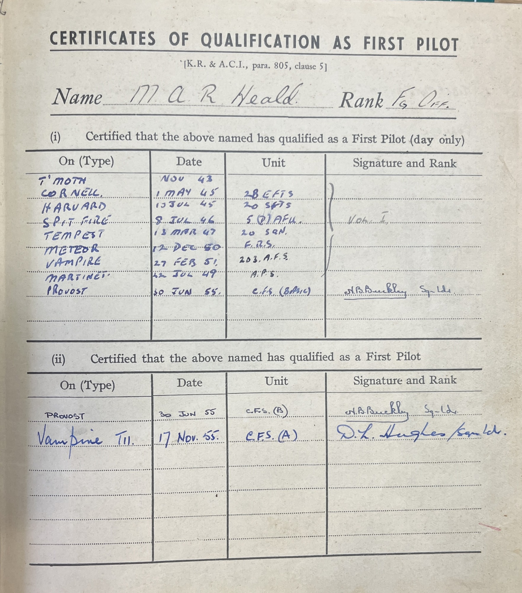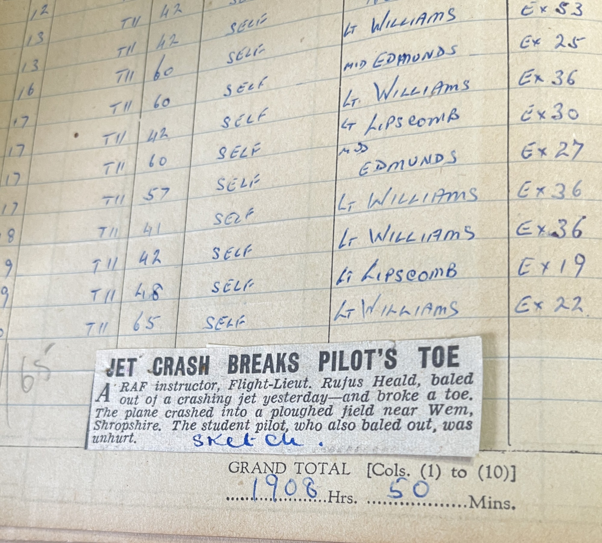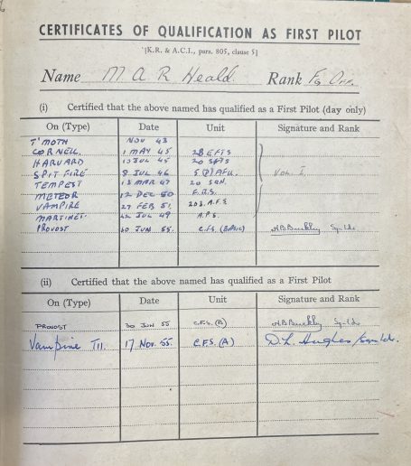 Needless to say, with so many flying hours in the log books, Rufus had many scrapes and prangs but like a cat with nine lives, he lived to tell his story. His log books proves that he could fly many different types of aircraft and he was responsible for training so many young men to fly.