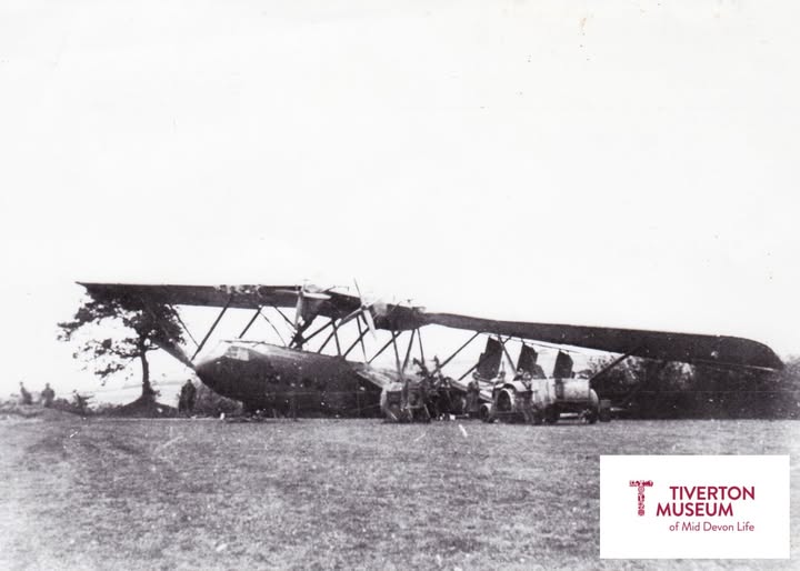 On 7 November 1939, a Handley Page 42 of Imperial Airways (G-AAXD) was flying from Paris to Exeter Aerodrome on a ferry flight and sadly crashed on Tiverton golf course. The aircraft was returning to Exeter after its crew dropped off Royal Air Force Command' staffs in Paris. While flying over Devon in marginal weather conditions, the crew was unable to locate the airport of Exeter nor to fix his position with certainty. Eventually, the captain decided to reduce his altitude and attempted an emergency landing on the Tiverton Golf course when on final, the aircraft impacted two trees and crashed. All three occupants were injured and the aircraft named 'Horatius' was destroyed. Luckily no passengers were on board at the time.