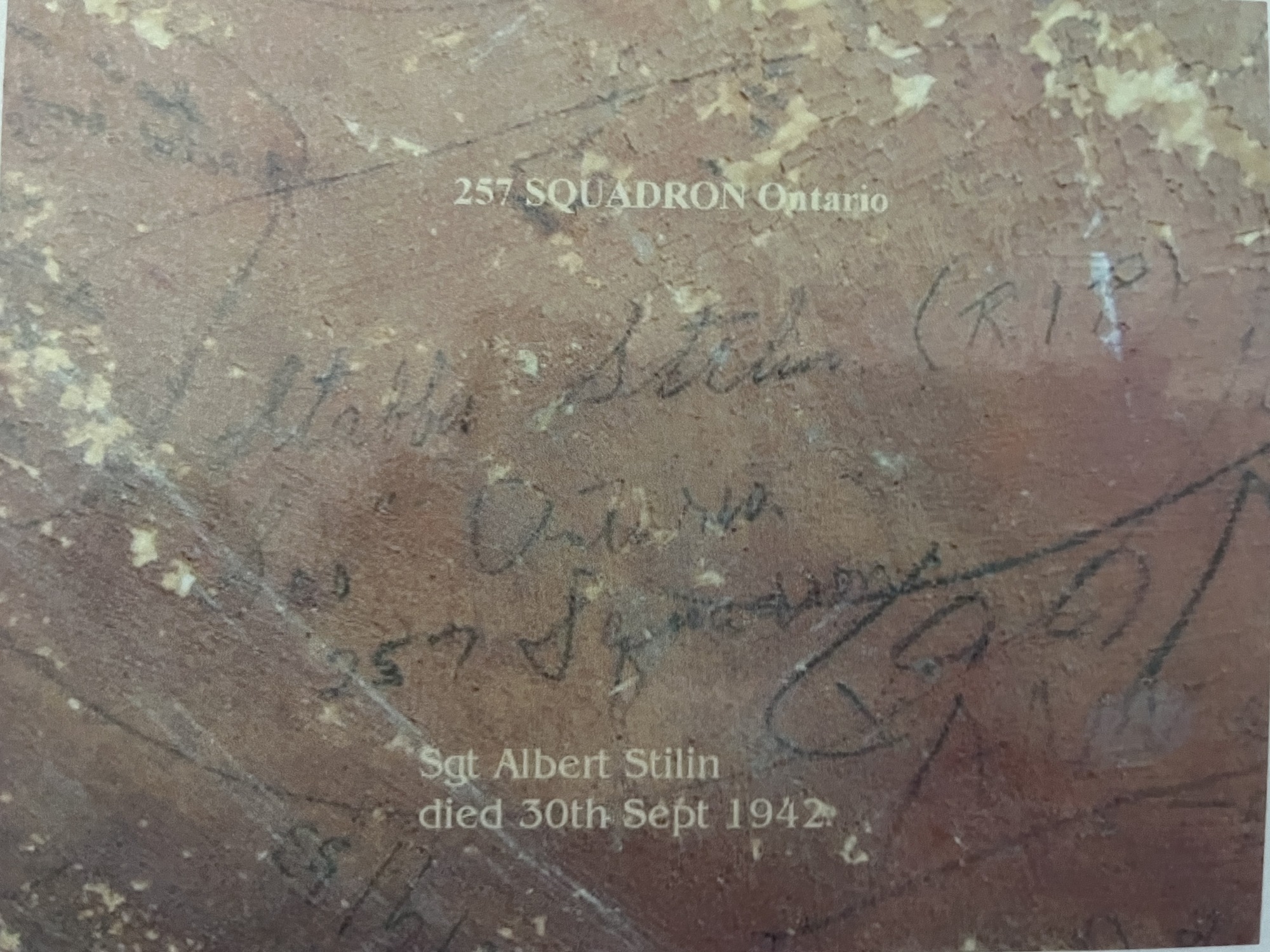 Royal Canadian Air Force - 257 (R.A.F.) Sqdn. The signature of Sgt Albert Stilin (pilot) who died on the 30 Sept 1942. Albert was aged just 21 years old. Photo Suzannah Holwell.
