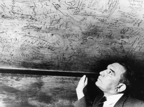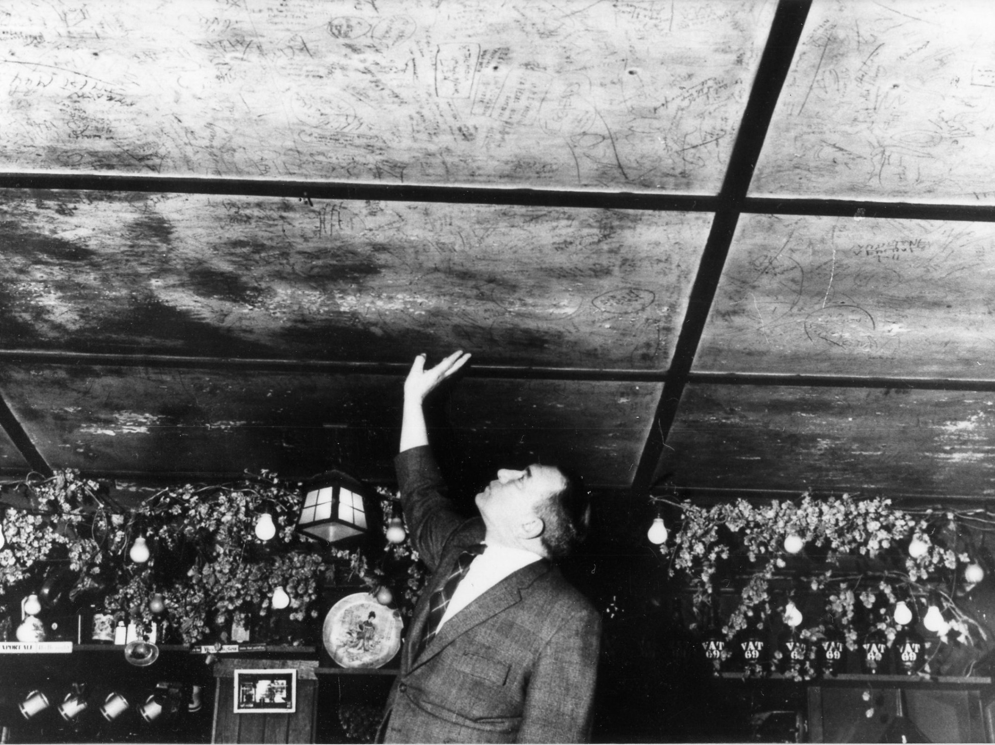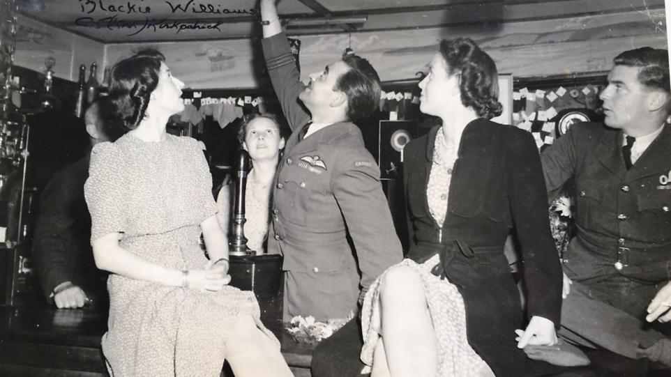 Another signature from an airmen is added to an already busy ceiling and watched on by local ladies. Photo Suzannah Holwell.
