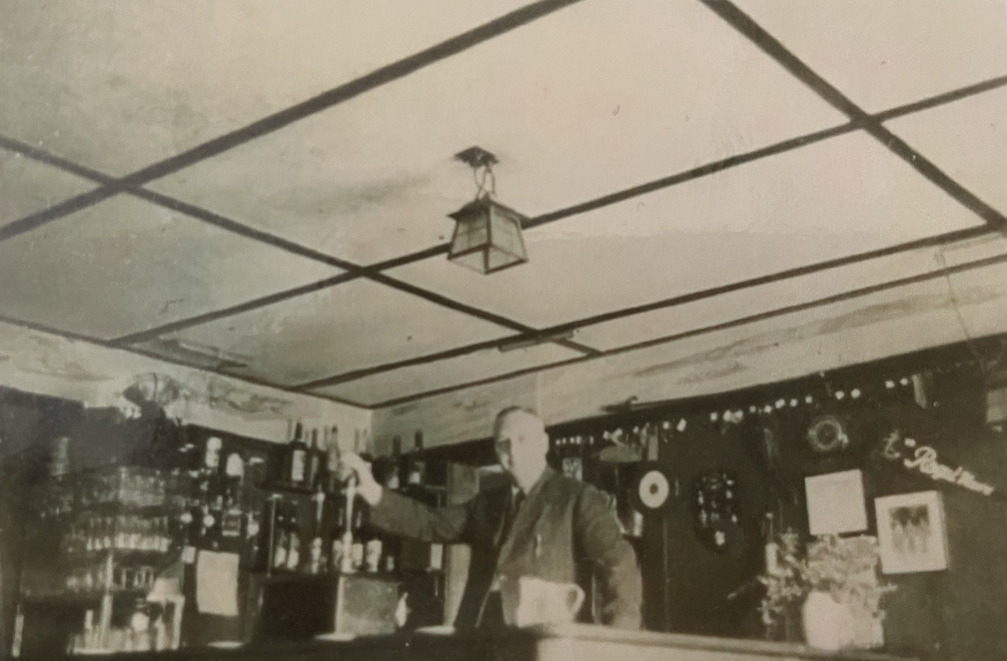 The Landlord from 1939 - 1945 Mr Harold Lobb poses in the bar area of the George and Dragon. Photo Suzannah Holwell.