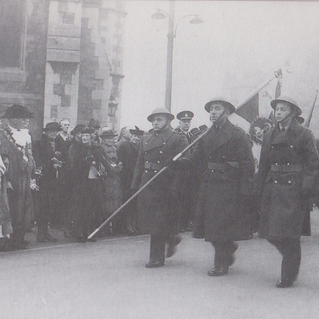 Above: Polish members of 307 Squadron from RAF Exeter march past the Mayor of Exeter, Mr Glover Sanders, as they parade to Exeter Cathedral during the World War Two in November 1942.