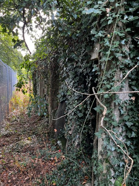 This is a photo of the 307 Suadron 'A Flight' dispersal building which still exists today underneath the overgrowth. You can still see 'DIS A' on the door. This type of building would typically accomodate 12 persons and is situated on the northern side of the airfield within on the eastern side of the perimeter track loop.
