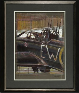 Below - Using Pen and Crayons, Last of the Defiants by David Calow depicts the Boulton Paul Defiant situated in the RAF Museum, RAF Cosford. This particular aircraft did serve in operations from RAF Exeter. Photo courtesy of The Guild of Aviation Artists.