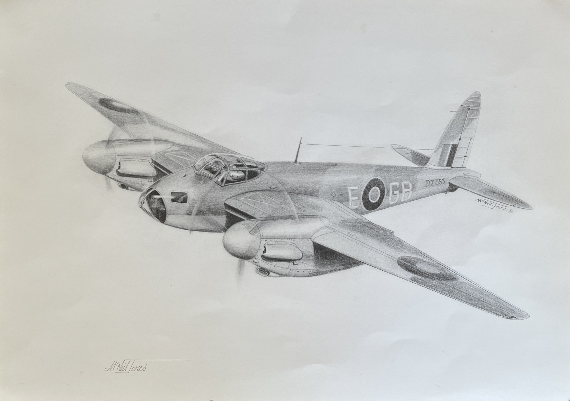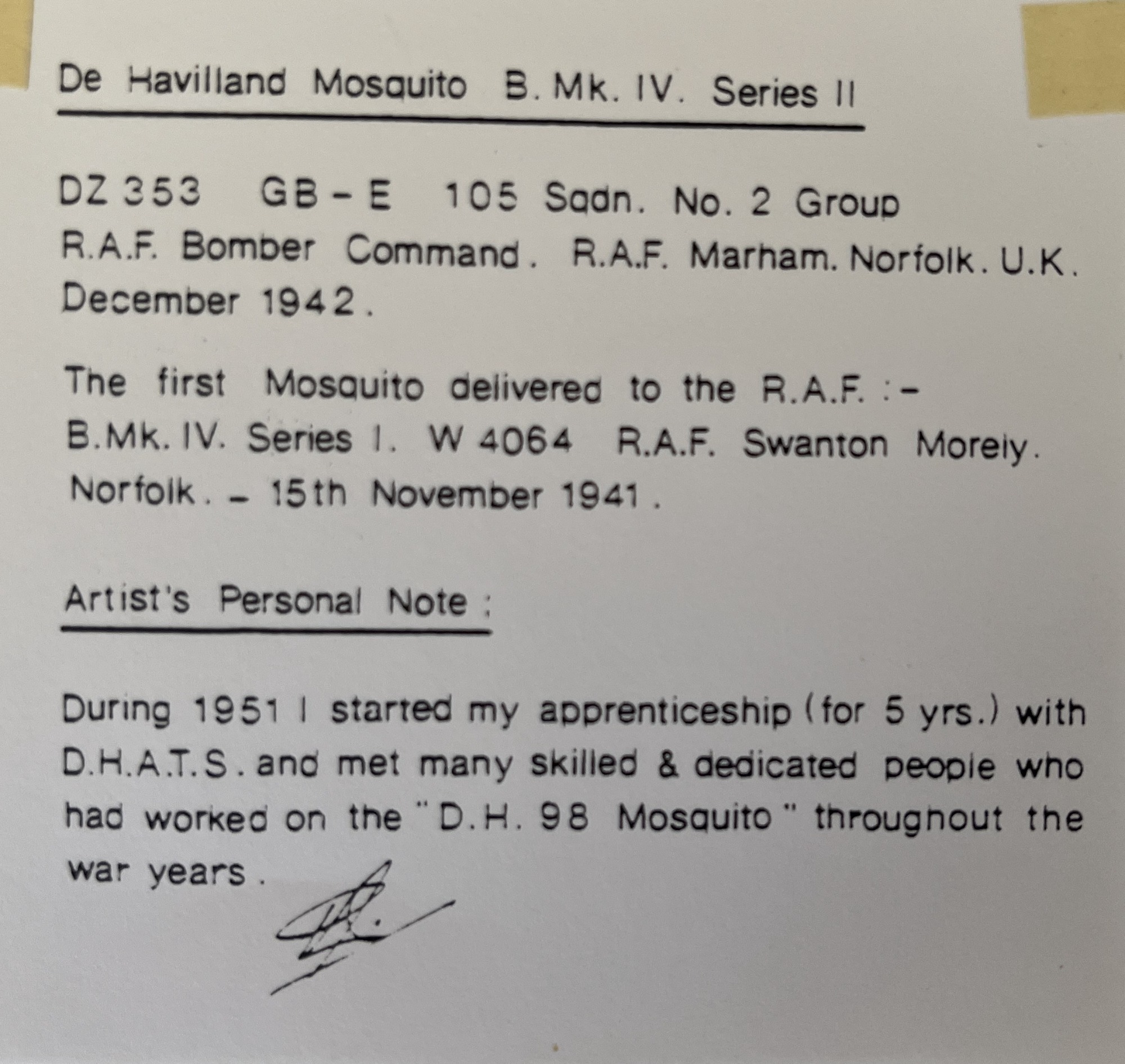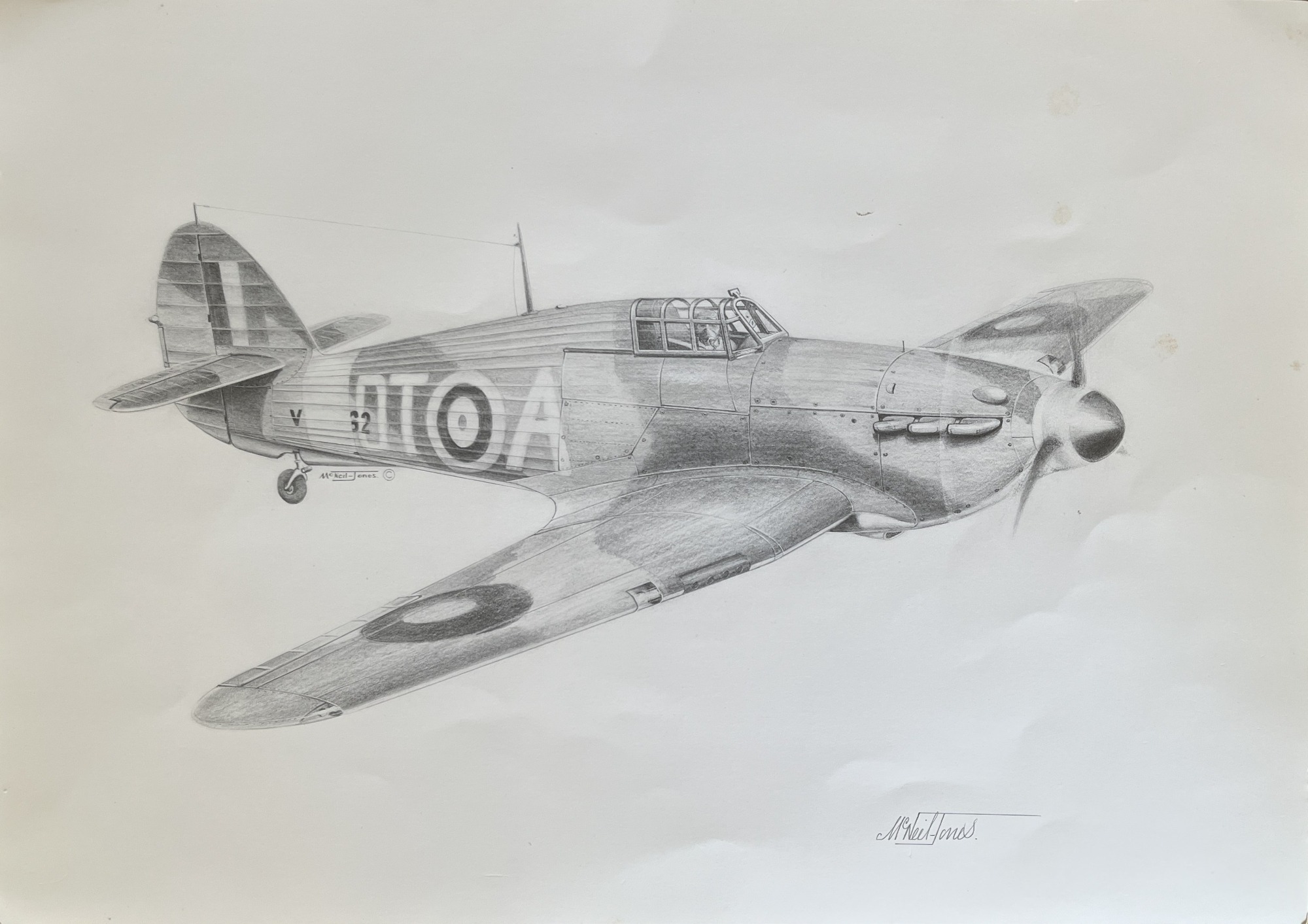 The four remarkable sketches below were the talented work of Peter McNeil-Jones from Essex. All are signed and personalised to my good friend Rodney Moffatt from Uffculme, Devon. Rod' visited our Battle of Britain exhibition on Sunday 6 July 2025 at Exeter Airport terminal building and kindly offered them to us. Each of the four sketches had notes on the reverse which have been included on here also.