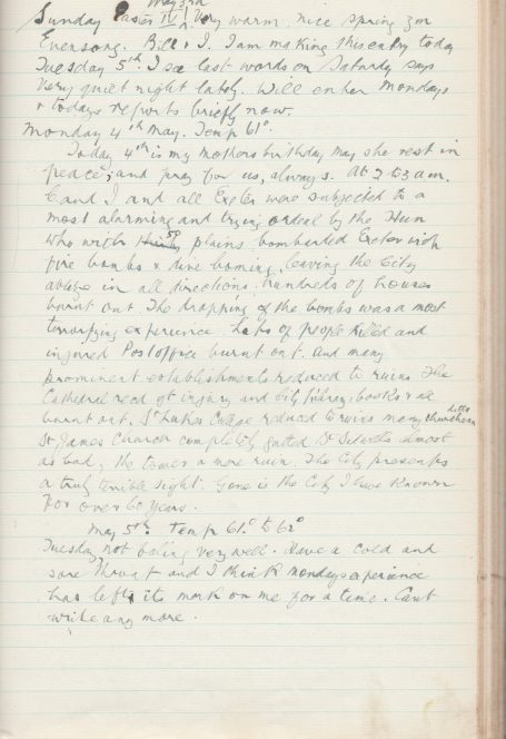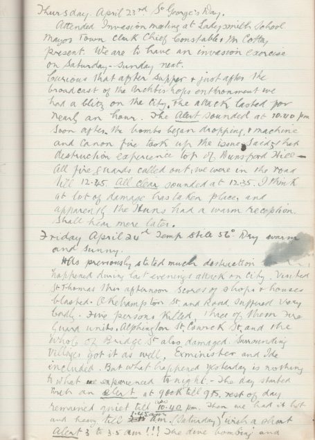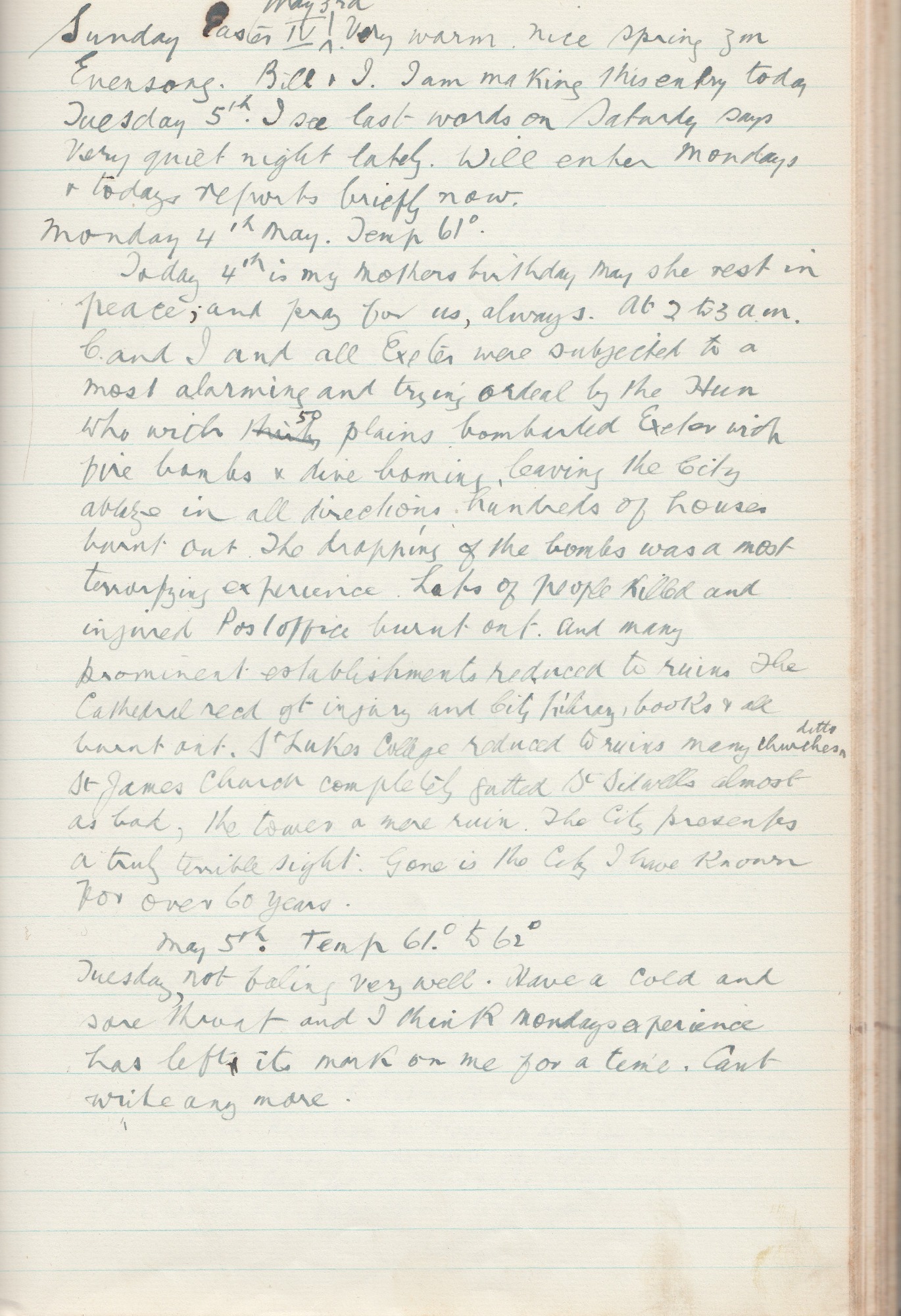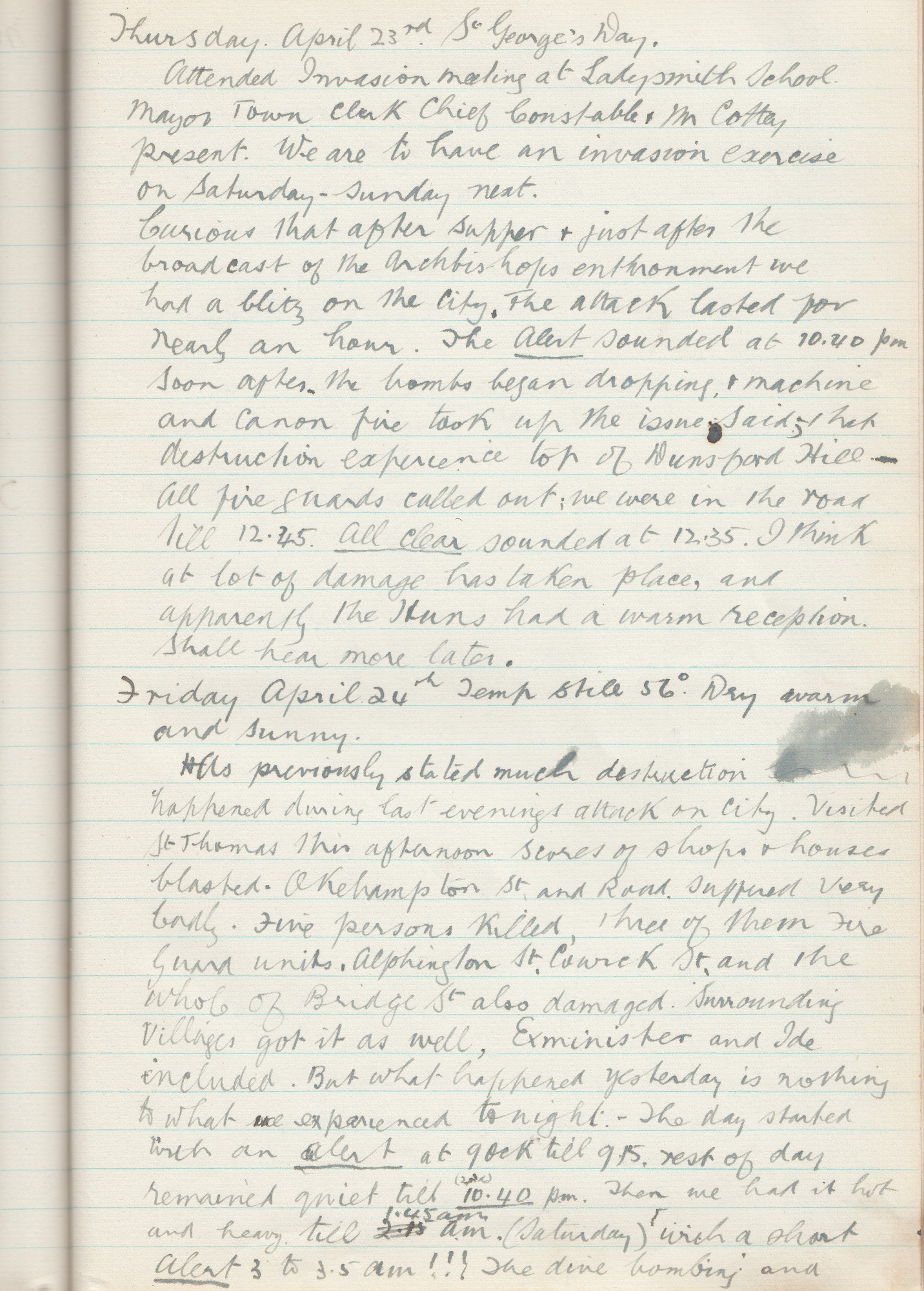 Yet it is precisely their simplicity — the brief entries, the steady observations, the matter‑of‑fact tone — that makes them so powerful. They show us how the city experienced the war from the ground: the sirens, the false alarms, the sudden violence, and the quiet resilience that carried Exeter through its darkest nights.