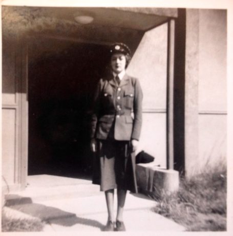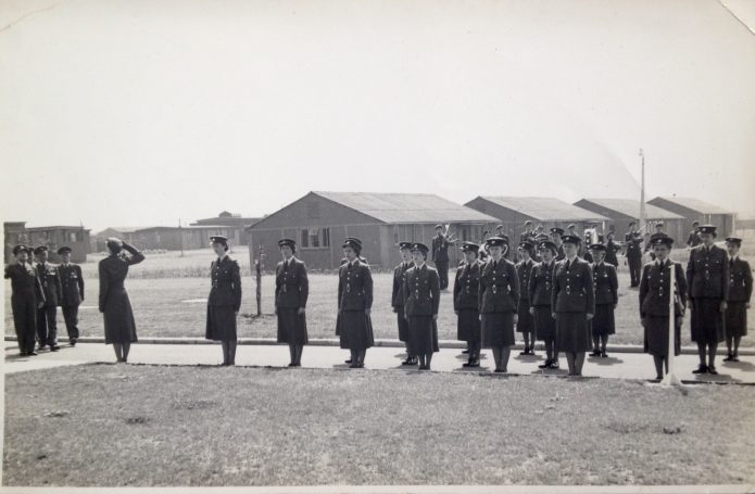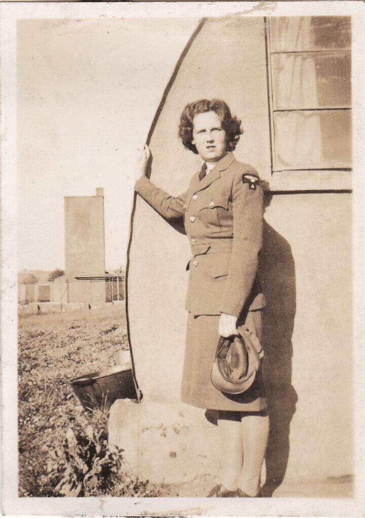She worked as a shorthand typist Clerk at Deer Copse in a Nissen hut for the Gunnery Research Unit (GRU) near to the aerodrome at Exeter. She would cycle on a bike with no gears and no lights from Pinhoe to the aerodrome ( 6 miles return journey) in all weathers. Jacqueline spent two years at Exeter before moving to her next deployment at RAF Collyweston and RAF Wittering. Whilst at Exeter Jacqueline took part in a victory parade at Exeter Cathedral where she provided a reading during the service. Jacqueline also carried out work for the Fleet Air Arm at Weston Super Mare and eventually transferred to the WRENS. Jacqueline ended the war as a Leading Aircraftwoman (LACW).