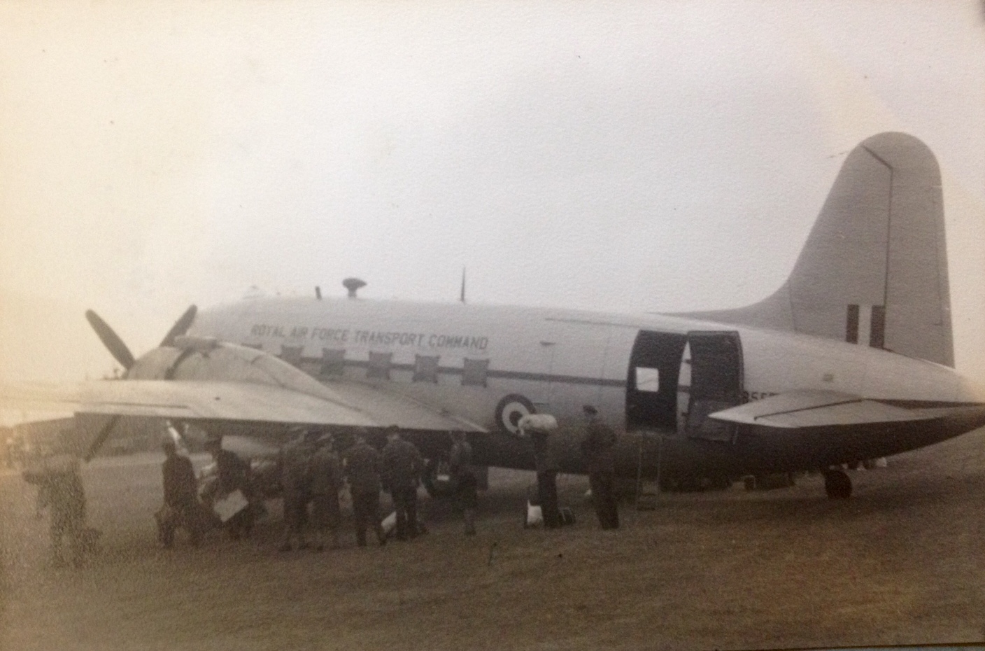 Below - A Vickers Valletta of Royal Air Force Transport Command sits on the apron at Exeter Airport waiting to take the WAAFs who travelled up from Hope Cove, Devon, to catch this flight to Scotland. The original watch tower can be seen in the background above the terminal building (front left of aircraft). Photo credited to original copyright.